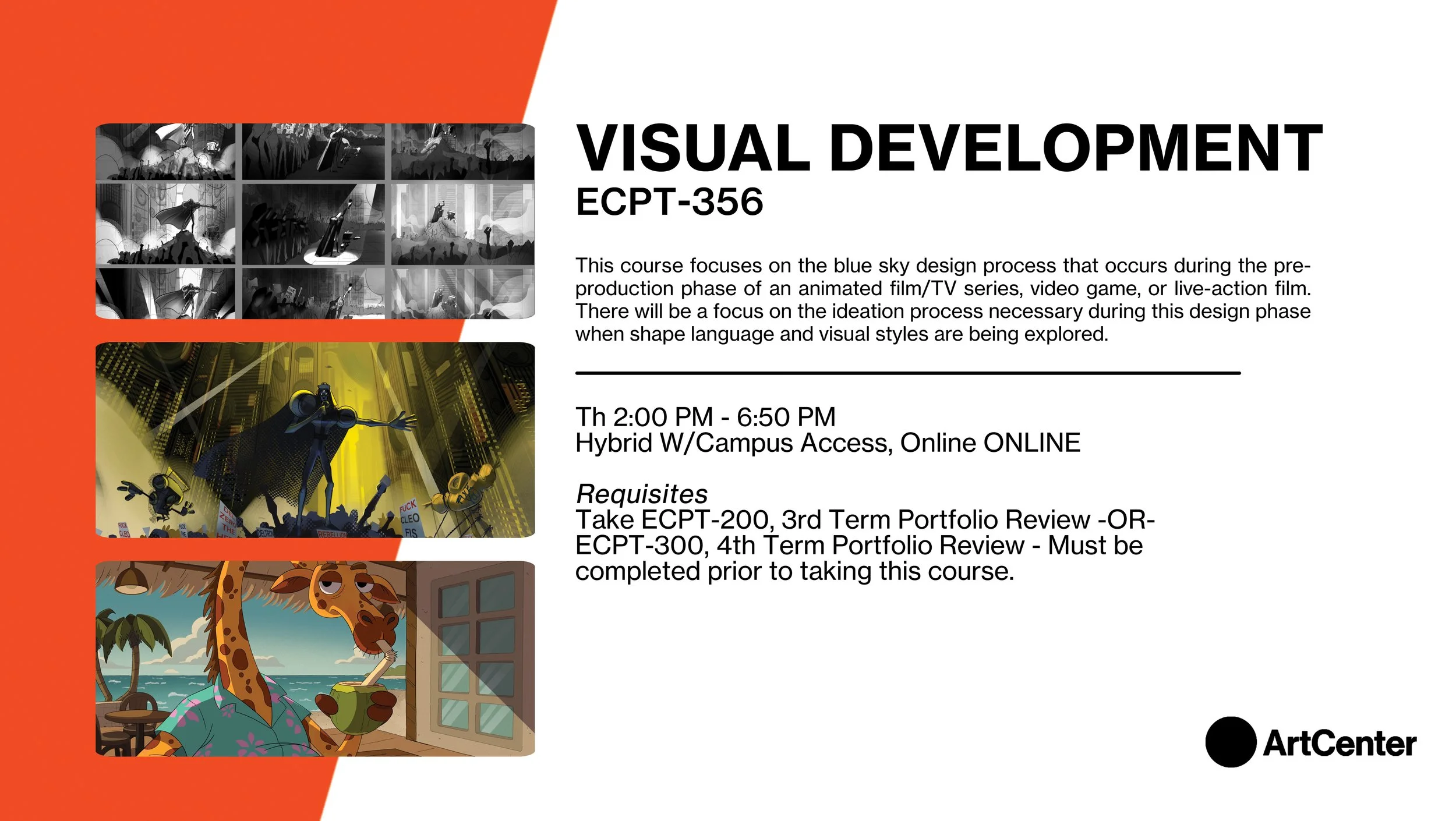 This course focuses on the blue sky design process that occurs during the preproduction phase of an animated film/TV series, video game, or live-action film. There will be a focus on the ideation process necessary during this design phase when shape language and visual styles are being explored.