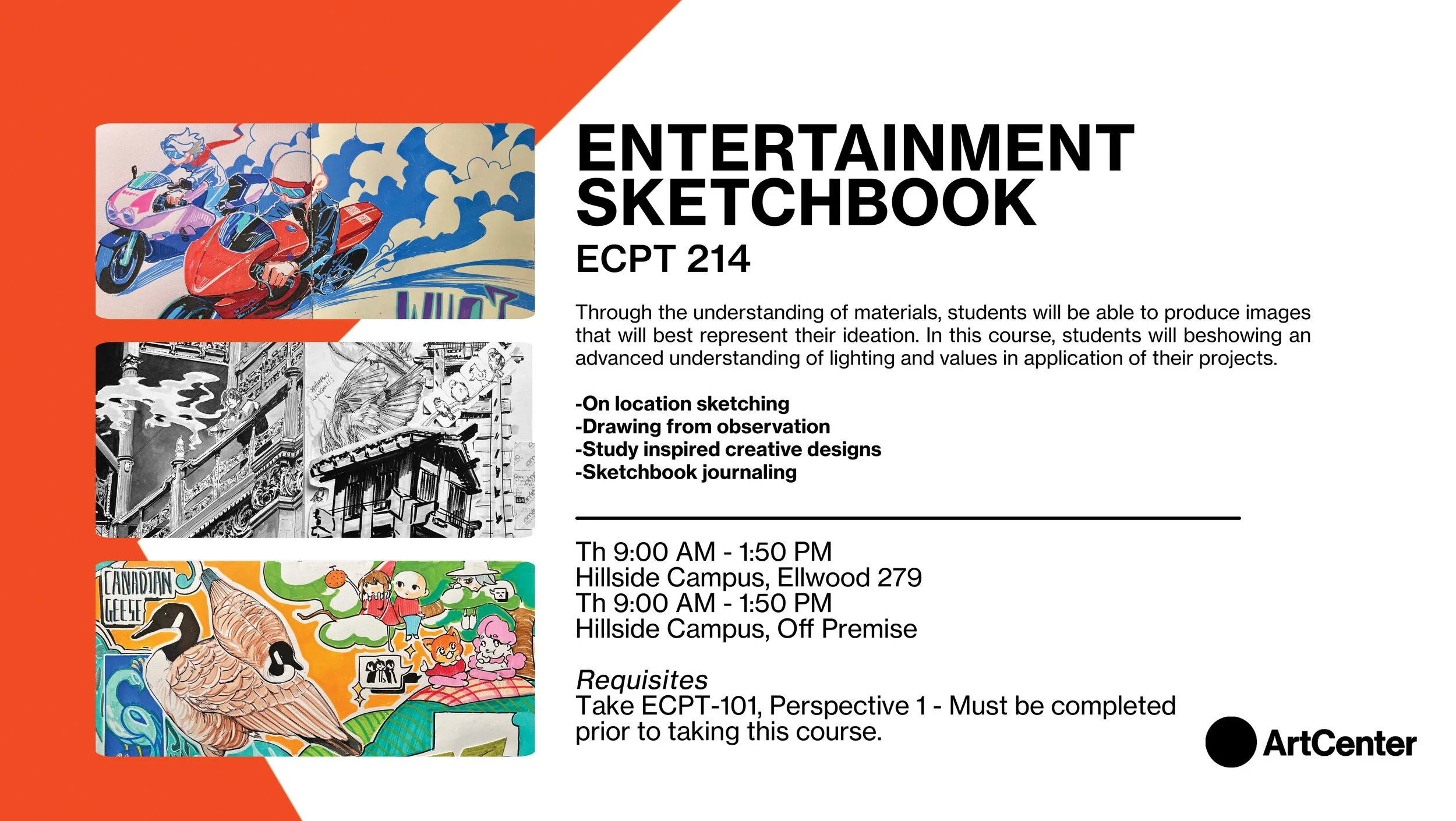 In this course, students will be showing an advanced understanding of lighting and values in application of their projects. through the understanding of materials, students will be able to produce images that will best represent their ideation. On location sketching / Drawing from observation / Using studies to inspire creative designs / composing a sketchbook / photographing reference with relevance to entertainment design.